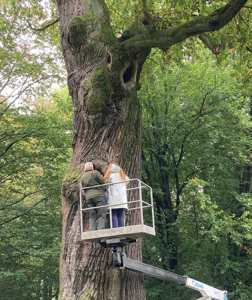 Wir hatten das Vergnügen, an einem sehr interessanten Forschungsprojekt teilzunehmen. Während des Krieges versteckten sich Brüder namens Hymi in diesem Baum (der heute ein Naturdenkmal ist). Im Inneren des Baumes blieben einige „Elemente, Spuren“ ihrer Existenz zurück (die Kratzer im Baum schufen laut mündlicher Überlieferung eine Leiter und einen Beobachtungspunkt).