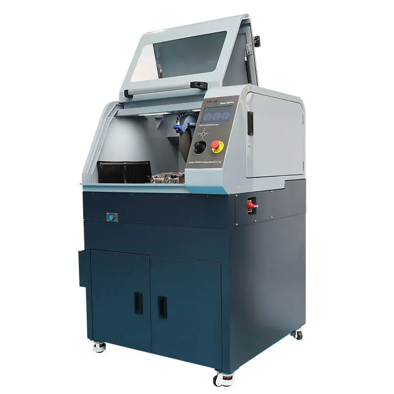 Beta-300Pro to w pełni automatyczna, pionowa przecinarka metalograficzna. Wykorzystuje zaawansowaną, inteligentną technologię sterowania z pełną obsługą za pomocą ekranu dotykowego. Wyposażona jest w trójosiowy joystick przemysłowy oraz laserowe pozycjonowanie, a jej powiększony stół roboczy ułatwia obsługę. Maszyna integruje różne metody i techniki cięcia, zapewniając doskonałą jakość powierzchni nawet przy ciężkich próbkach o dużym przekroju. Inteligentne tryby cięcia gwarantują najwyższą powtarzalność procesu.