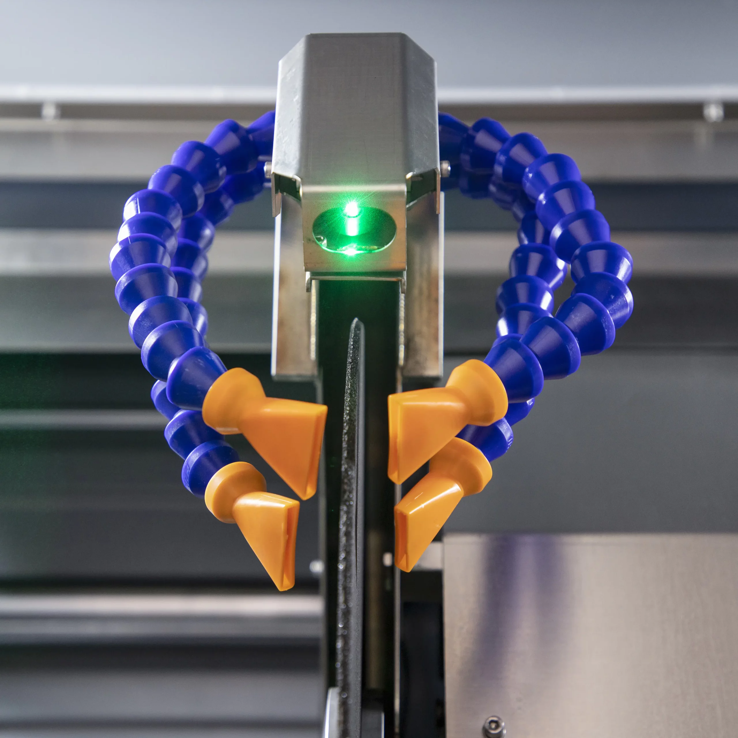 Zintegrowany separator magnetyczny, system filtracji z papierowym pasem oraz laserowe ustawienie dla czystej pracy i precyzyjnego pozycjonowania.
