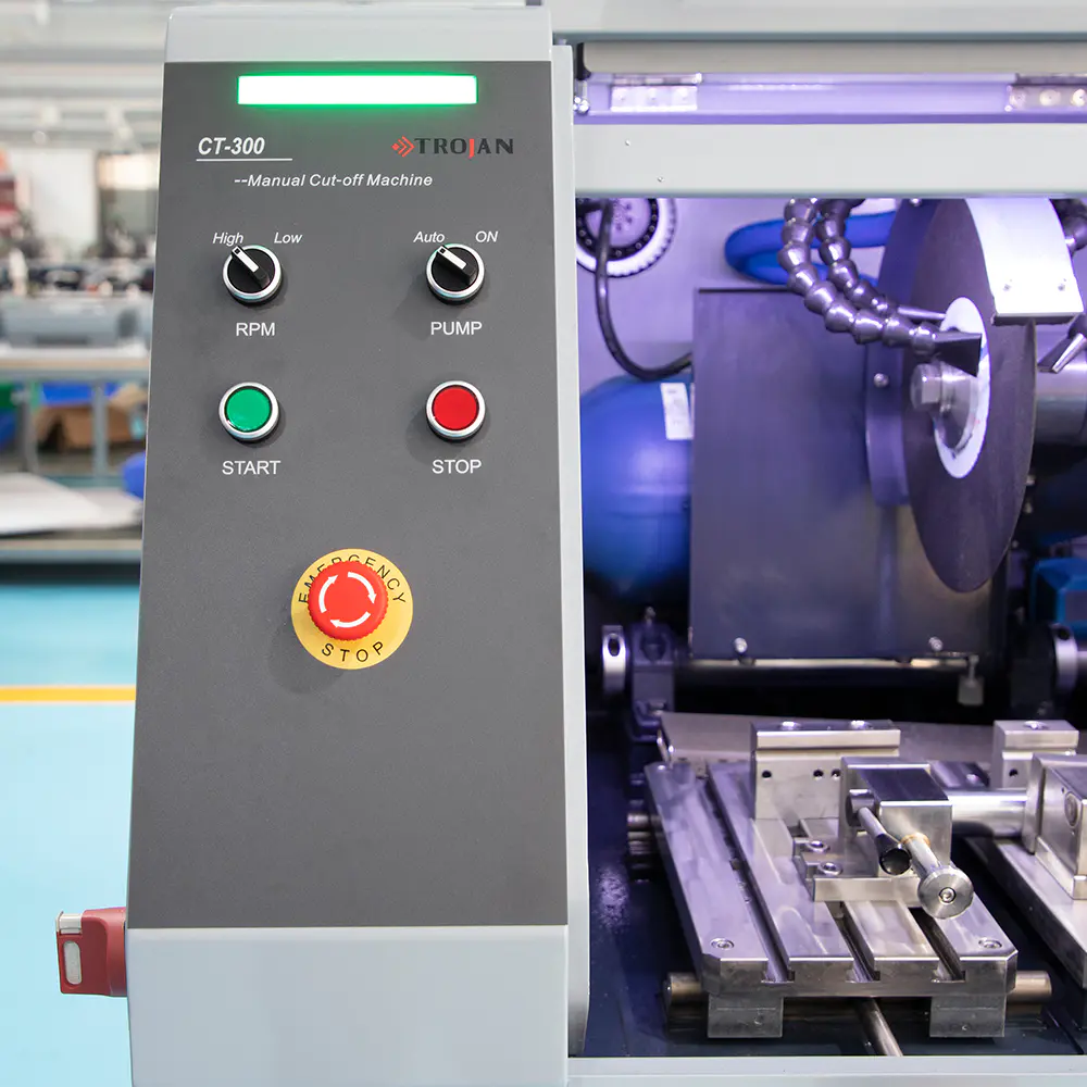 CT-300 to przyjazna dla użytkownika i wydajna ręczna maszyna do cięcia. Została zaprojektowana do cięcia próbek o różnych kształtach, rozmiarach oraz złożonych materiałach. Drzwi bezpieczeństwa przesuwane do góry umożliwiają szybkie i łatwe umieszczanie próbek. Wyposażona w solidny silnik oraz ergonomicznie zaprojektowane ramię tnące, zapewnia efektywne i stabilne cięcie. Prosta w obsłudze i łatwa do nauki.