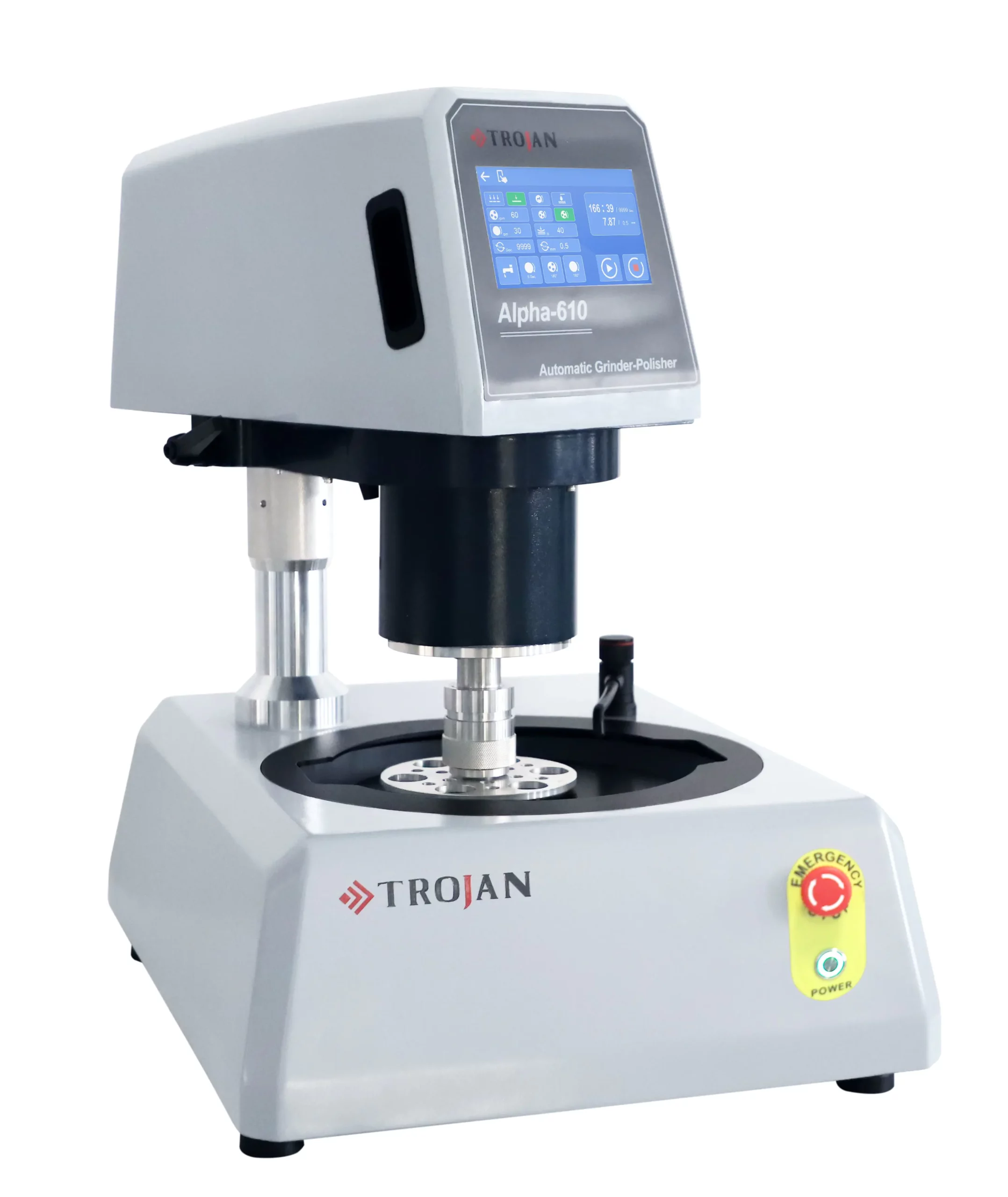 Alpha-610 to automatyczna szlifierko-polerka z jedną płytą. Głowica szlifierska i płyta szlifierska napędzane są dwoma niezależnymi silnikami, co umożliwia szlifowanie płyt o średnicy 200–300 mm. Maszyna oferuje dwa rodzaje dozowania ciśnienia: centralne i indywidualne, a opcjonalnie może być wyposażona w 4 zestawy perystaltycznych pomp kroplujących. W systemie można ustawić i zapisać 20 zestawów najczęściej używanych procesów szlifowania, co umożliwia łatwe i szybkie uzyskiwanie powtarzalnych wyników testów.