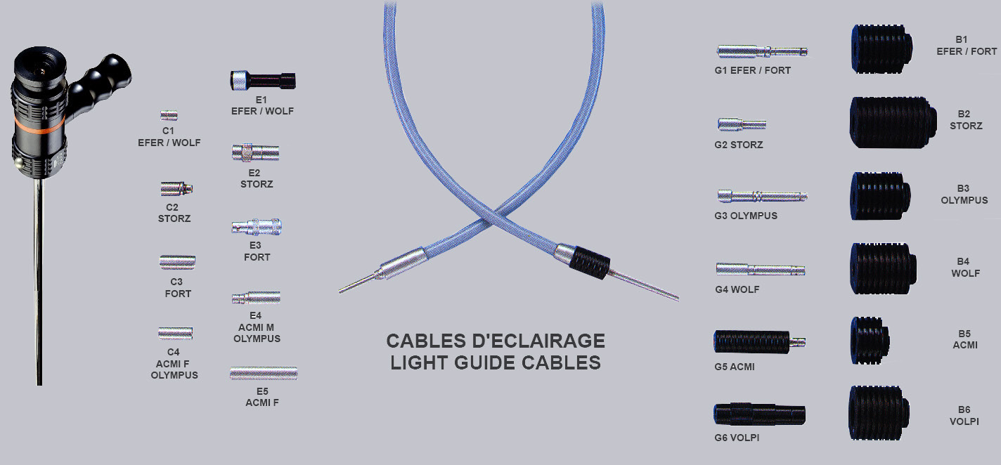 - Złącza do endoskopów i fibroskopów EFER ENDOSCOPY, kompatybilne z kablami oświetleniowymi innych marek