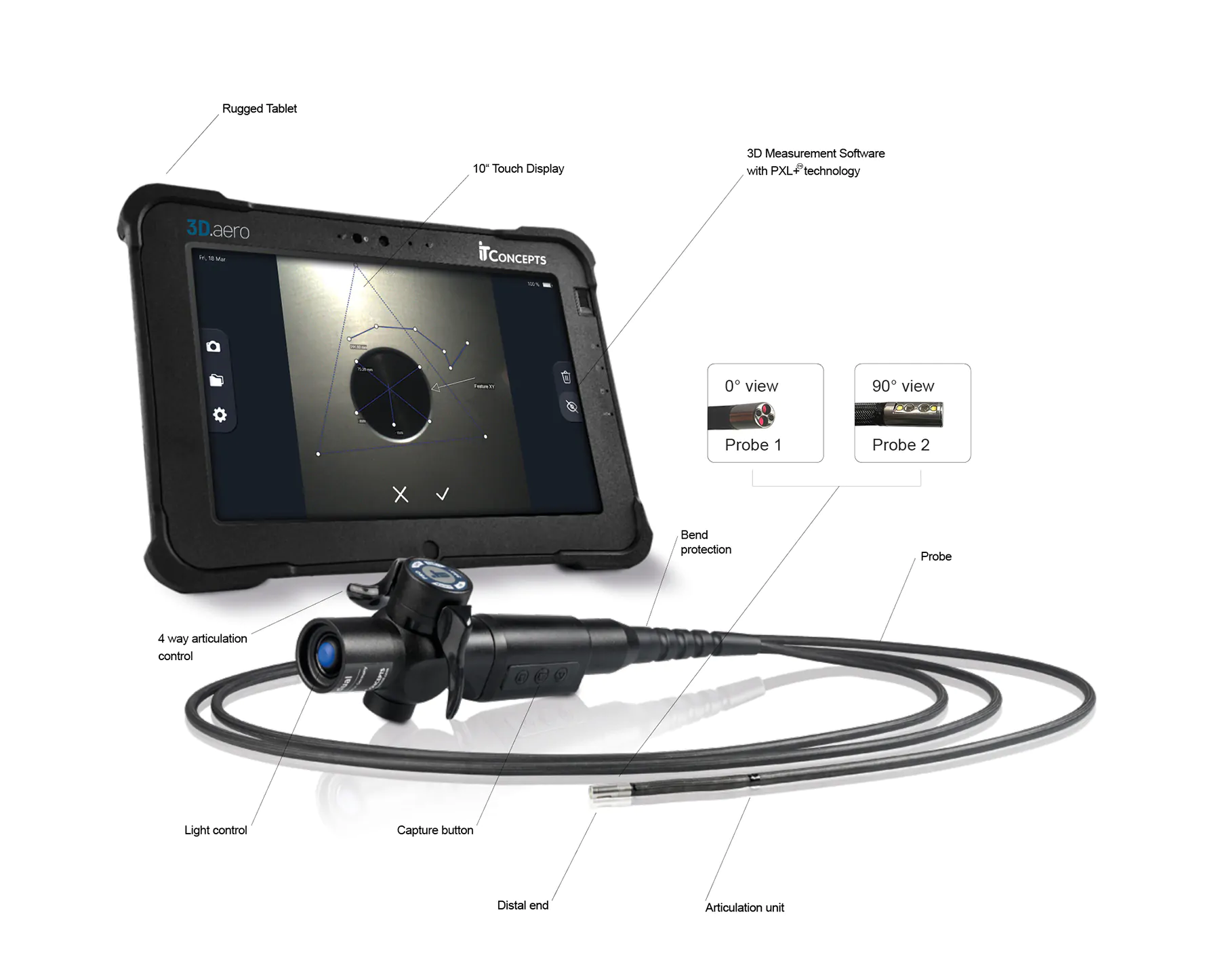 System oferuje różne sondy, częściowo wyposażone w kamerę stereowizyjną generującą dane 3D.